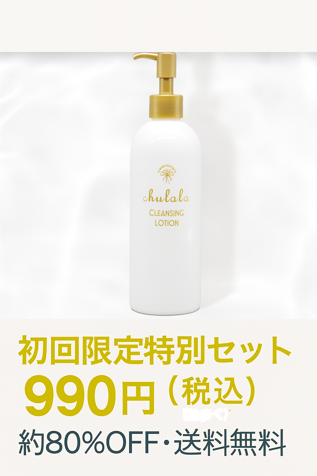 ちゅららクレンジングローション公式サイトなら初回80%OFFの990円(税込)でお試しいただけます!